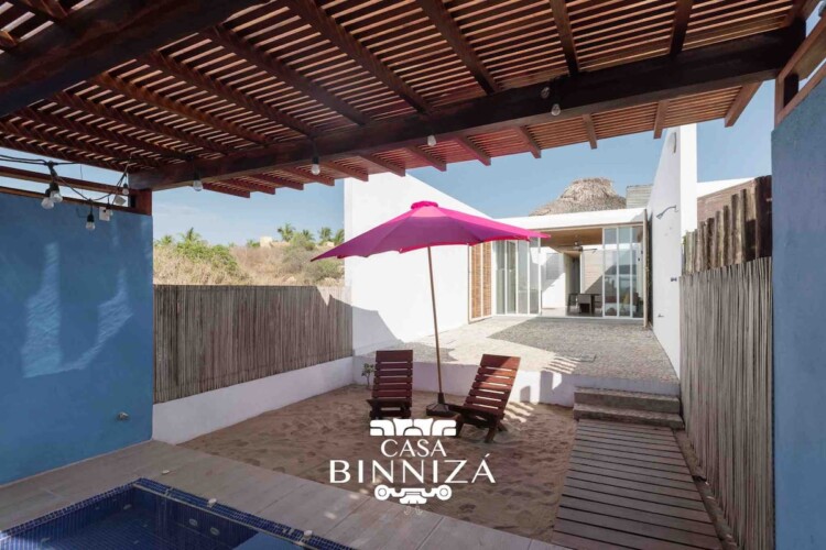 Casa Binnizá is located 30 steps from the beach, 30 minutes from Puerto Escondido Airport, 20 minutes from Escobilla and 30 minutes from Mazunte